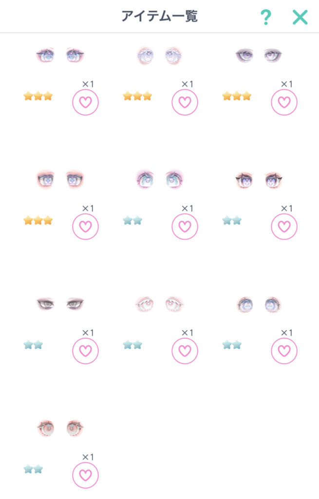 今月は目パーツのみ10個。星3は使いやすそうでかわいい。